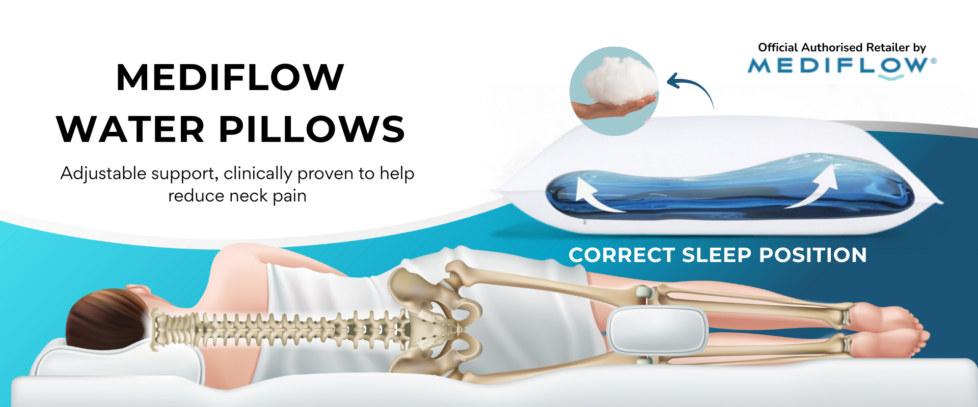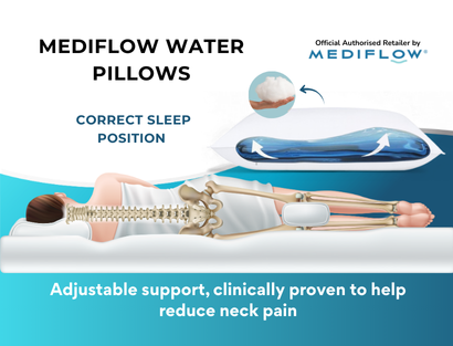 We are the authorized UK dealer of Mediflow®️ waterpillows, the original and best-selling water-based pillow worldwide. These pillows adjust to your sleeping position, providing personalized support and reducing neck stiffness for a better night’s sleep.