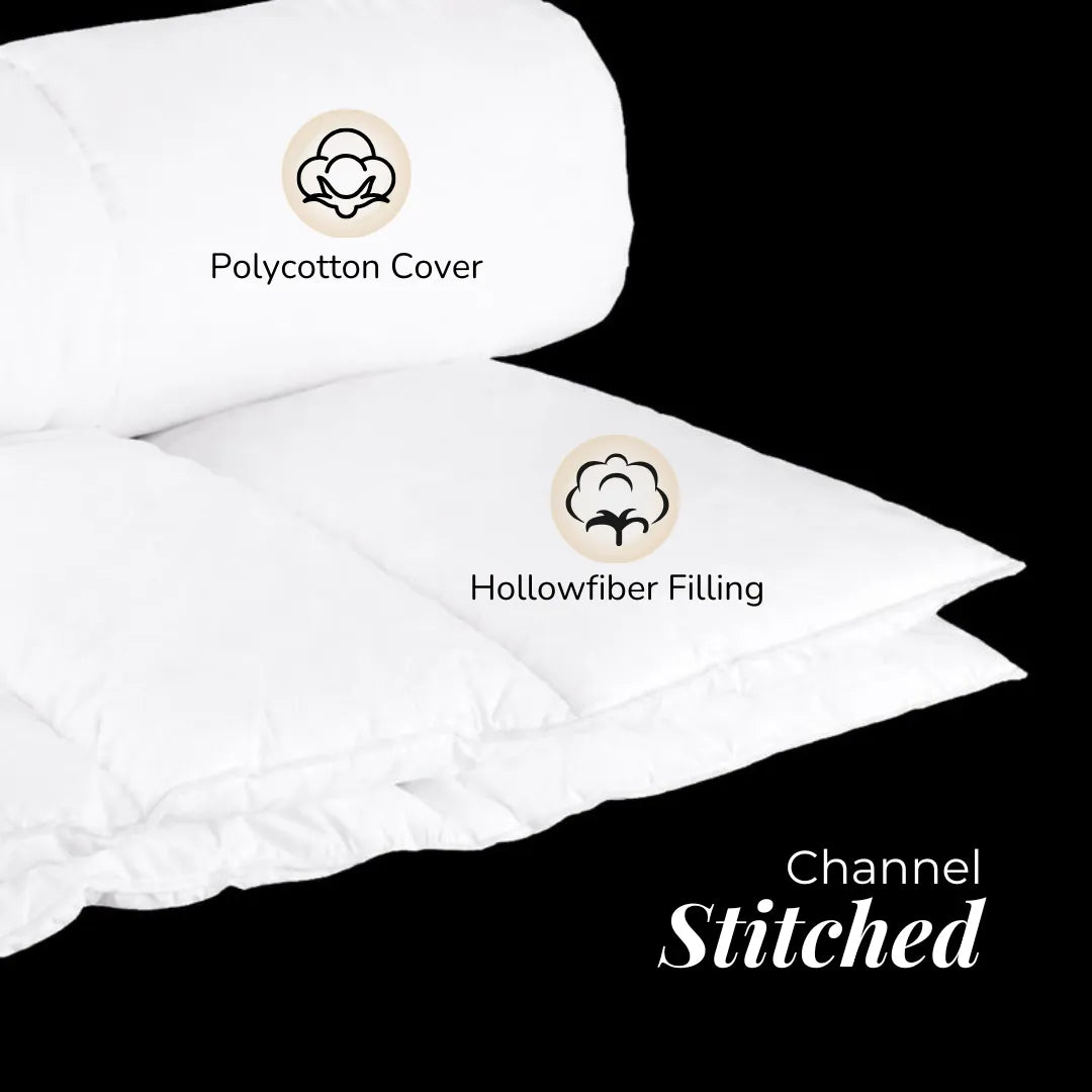 Sensitive Sleepers: Ideal for allergy-prone users, polycotton is less likely to trap dust mites, mould, or allergens compared to natural fibres. The Hollowfibre filling provides excellent insulation while preventing moisture build-up, helping maintain a clean and healthy sleep environment.
