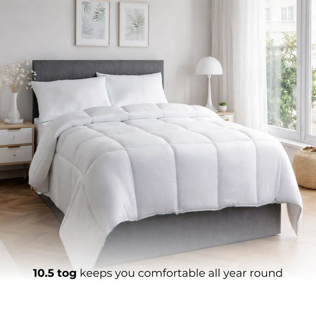 Enjoy year-round comfort with The Royce 10.5 Tog Microfibre Duvet — perfectly balanced for warmth and breathability. With its 10.5 Tog rating, this duvet provides the ideal weight for cooler seasons, keeping you cosy without overheating.